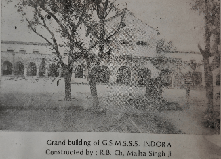 In 1919 R.B Mallah Singh Expressed his desire to hand over the then existing primary school to Rajput Committee. Accordingly, Ch. Kharak Singh Hony. Magistrate,R.B. Ch. Lehna Singh, Thakur Kirpa Ram, Ch. Narain Singh and Thakur Singh Came to Indora was the Prominent members of that Committee. The idea to raise this School up to high school was discussed and committee of 16 Leading Rajput's were formed with Ch. Mallah Singh Ji its President and Ch. Kharak Singh its manager.
