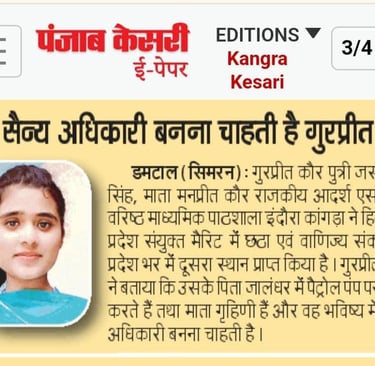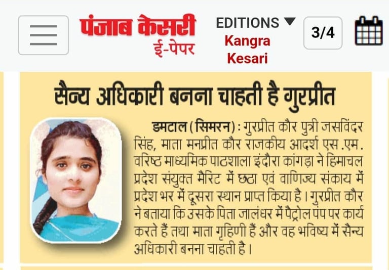 Gurpreet Kaur (2nd topper of HPBoard in commerce stream March 2024)